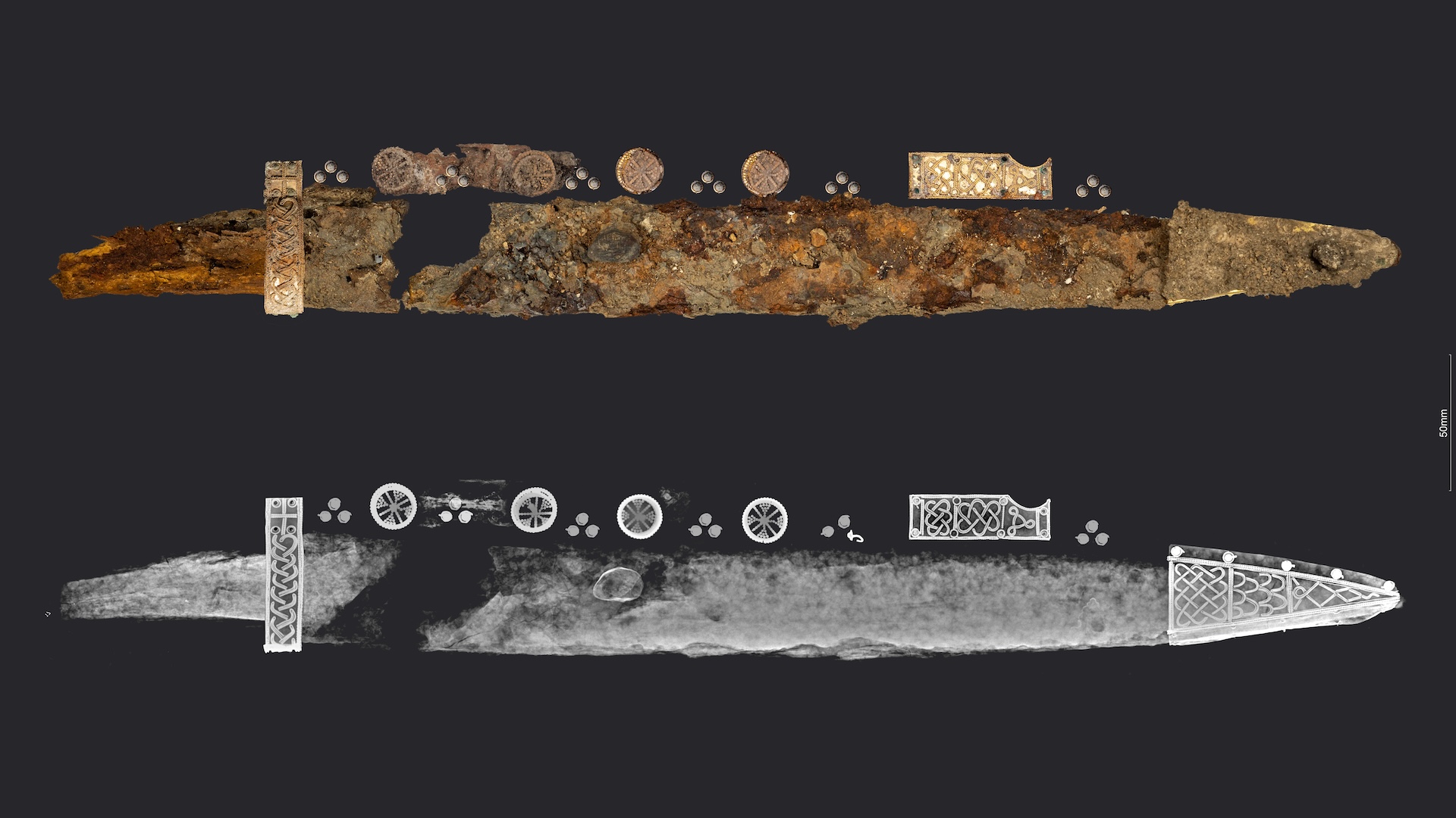 Мальчику было около 18 месяцев, когда он умер, но его похоронили с маленьким мечом и ножнами на богато украшенном поясе.