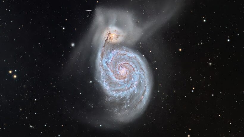 Еще в феврале Эрнандес Бейлисс прицелилась в галактику Водоворот, используя набор фильтров RGB и водородно-альфа (Ha), чтобы запечатлеть тонкие структурные детали Мессье 51, изображенной выше.